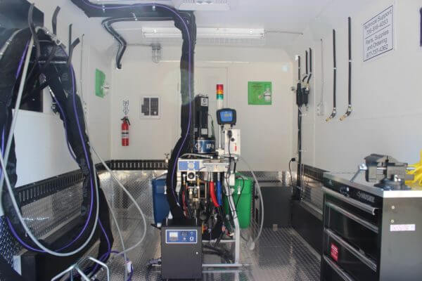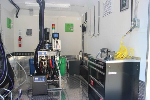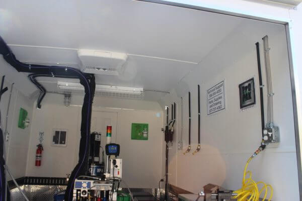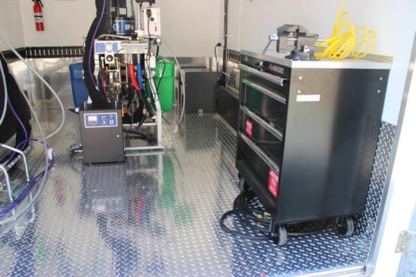 - Closed Cell Insulated Walls & Ceiling Diamond Plate Floors, Gloss White Plywood Walls, White Ceiling, Trim Out, E-Track Barrel Bracing, Work Bench w/ Vise Mounted), Spray Hose Rack, Fresh Air Hose Rack